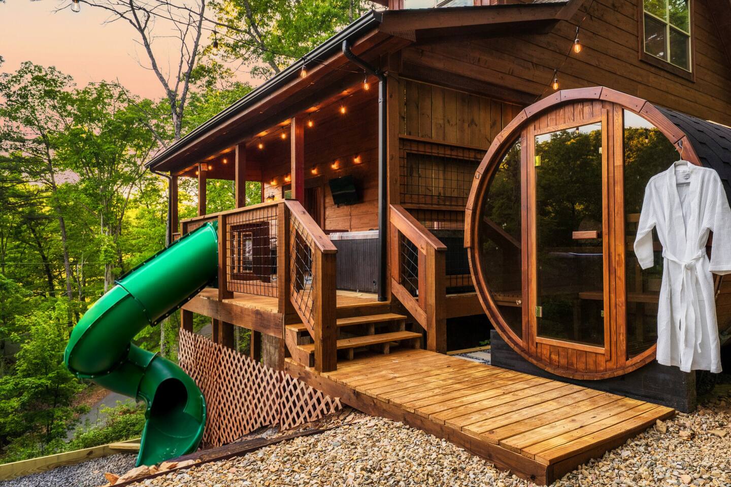 ➖ The Knotty Bear Retreat ➖ A Stylish, Family-Friendly Smoky Mountain Cabin Built in 2022 loaded with Amenities. Named for its Knotty Pine Walls & Mischievous Local Bears. Knotty Retreats is Veteran Owned & Operated — committed to excellence, anticipating your needs, & hospitality. We proudly self-manage & with 400+ Five-Star 🌟🌟🌟🌟 reviews across our properties, you'll feel right at home. Heart ❤️ us while you search and check out our profile to explore our other cabins: ➖The Knotty Buck Retreat, 1916 Rhododendron Lane Sevierville, TN 37876 ➖The Knotty Beaver Retreat, 2506 Treehouse Lane Sevierville, TN 37876 🔥 AMENITY LOADED: ▻ Fire Pit — Hot Tub ▻ Barrel Sauna — Outdoor Shower ▻ 7 Foot Deck Slide ▻ 2 covered decks with comfy lounge furniture ▻ Game room loft with arcade, foosball, Connect Four, and more! ▻ Private corner lot with no neighbors on two sides ▻ Parking for SIX vehicles on a flat driveway 🛏 Sleeping Arrangements — Comfortably Sleeps 12 ▻ 1st Floor: King bedroom + adjacent full bath (tub/shower combo) ▻ 2nd Floor: King & Queen suite with sitting nook + private bath (walk-in shower) ▻ 3rd Bedroom Loft (not private or enclosed) and Game Room: Full-over-full bunk beds featuring an arcade with Pac-Man and Donkey Kong (60+ other games included), a foosball table, board games, and giant Connect Four ▻ Living Room: Queen sleeper sofa 🗺 LOCATION LOCATION LOCATION! Guests Often Comment On Our Convenient & Central Location! ▻ Only 6 minutes off the Parkway between Pigeon Forge & Gatlinburg ▻ Private corner lot (no neighbors on 2 sides) ▻ Nestled in the Mountains Surrounded by Mature Wooded Tree-Lined View ▻ Parking for 6 (SIX!) vehicles on the FLAT driveway ▻ Access to the Sky Harbor pond, a 1-minute drive from the cabin, so bring your fishing gear! ▻ 7 minutes to Pigeon Forge ▻ 10 minutes to Downtown Pigeon Forge ▻ 12 minutes to Gatlinburg ▻ 14 minutes to Dollywood, Downtown Gatlinburg, or The Island ▻ 20 minutes to the Great Smoky Mountains National Park Entrance 🍳 Fully Equipped Kitchen ▻ Fully equipped kitchen with modern appliances ▻ Dining table with seating for 8 and an additional 3 seats in the bar area ▻ Charcoal grill & outdoor dining ▻ Washer/dryer on 1st floor CHILL VIBES from sunrise to sunset ▻ Sweat the Stress Away in the Barrel Sauna! ▻ A Deck you'll want to live on! ▻ Enjoy your morning coffee, soaking in a perfectly heated Hot Tub to soothe your muscles after a day of exploring...or just chilling! ▻ Grill out and enjoy the S'mores at the FIRE-PIT! ▻ Watch a flick on the patio TV snuggled on the cozy patio sofa! ▻ Open Floor Plan Flooded With Light From Cathedral Ceilings ▻ Cozy electric fireplace ▻ Smart TVs to cast your favorite streaming service even on the patio! ▻ Set the vibe with your favorite music on the surround-sound speaker ▻ Fast Wi-Fi