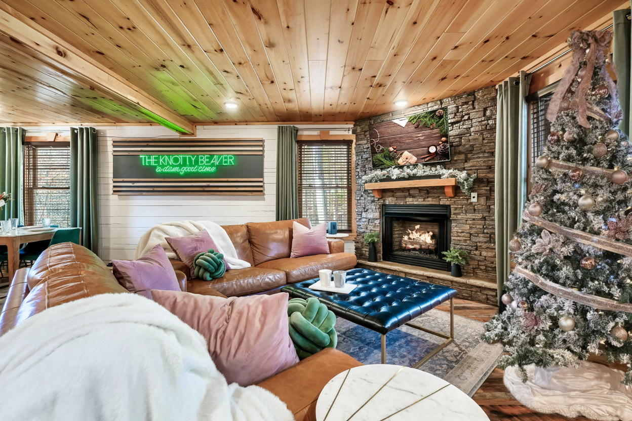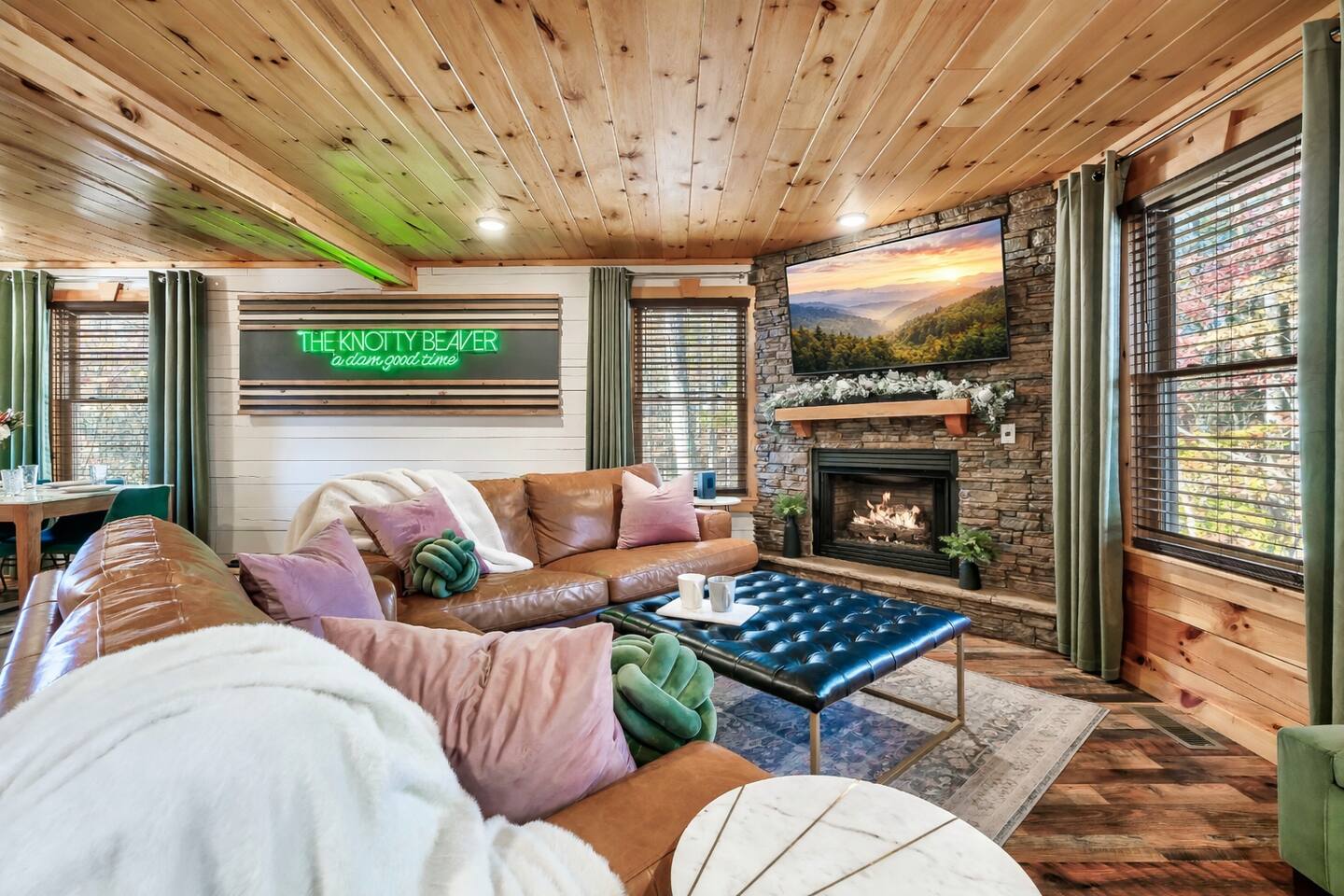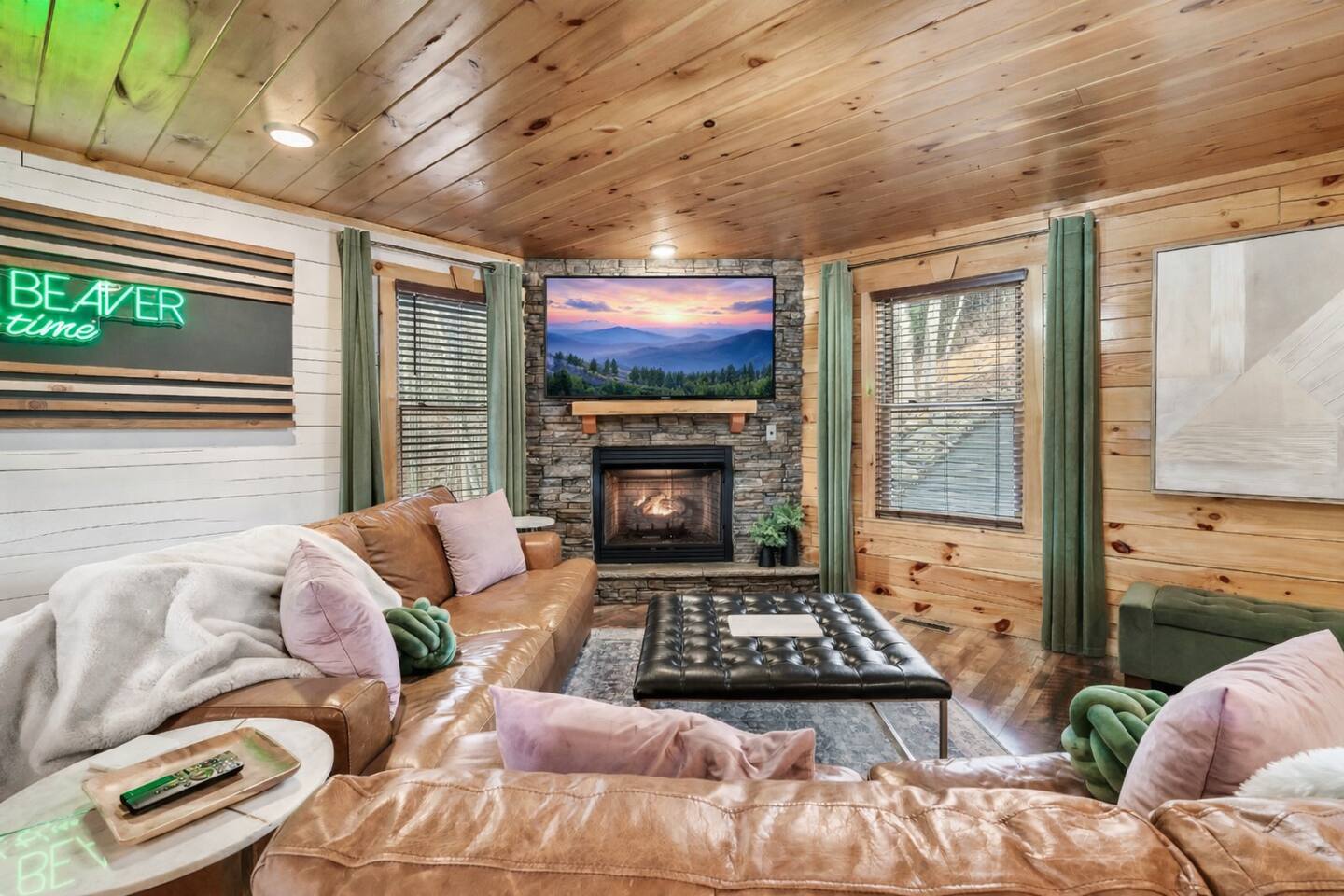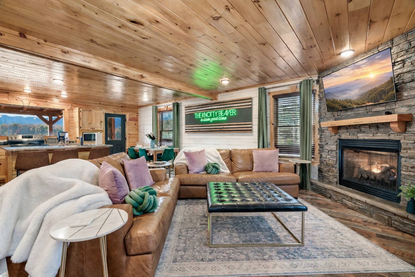 ➖The Knotty Beaver Retreat➖A Dam Good Time with a Dam Fine View! Knotty Retreats is Veteran Owned & Operated — committed to excellence, anticipating your needs, & hospitality. We proudly self-manage & with 400+ Five-Star 🌟🌟🌟🌟 reviews across our properties, you'll feel right at home. Heart ❤️ us while you search and check out our profile to explore our other cabins: ➖The Knotty Buck Retreat, 1916 Rhododendron Lane Sevierville, TN 37876 ➖The Knotty Bear Retreat, 1516 Sky View Drive Sevierville, TN 37876 🔥 AMENITY LOADED: ▻ 180° mountain views...we're talking up close & personal ▻ Rare outdoor patio gas Fireplace ▻ Hot tub ▻ Soaker tub ▻ Covered deck with comfy lounge furniture, TV, & dining table ▻ Game room with arcades, foosball, Connect Four, and more! ▻ Parking for six vehicles ▻ Private 1 acre lot 🛏 Sleeping Arrangements — Comfortably Sleeps 12 ▻ 1st-Floor KING Ensuite bedroom with additional full-size bed / Full Bath (Rain Shower & Separate Large Soaker Tub) ▻ 2nd-Floor KING Ensuite bedroom / Full Bath (Walk-In Shower) ▻ 2nd-Floor 3rd Bedroom and game room with 2 Queen beds and 1 Full-size bed. Featuring arcades, a foosball table, board games, and Giant Connect Four ▻ Half bath (toilet, sink, vanity) downstairs for the kiddos! 🗺 Location Location Location! Guests Rave About Our Secluded but Convenient & Central Location! ▻ Private lot on One Acre! ▻ Nestled in the mountains surrounded by mature wooded mountain views ▻ Parking for 6 (SIX!) vehicles ▻ Only 11 minutes off the Parkway ▻ 15 minutes to Gatlinburg (6 miles) ▻ 24 minutes to Downtown Pigeon Forge (13 miles) ▻ 21 minutes to the Great Smoky Mountains National Park Entrance ▻ 25 minutes to Dollywood, Downtown Gatlinburg, or The Island 🍳 Fully Equipped Kitchen ▻ Fully equipped kitchen with modern appliances ▻ Dining table w/seating for 6 and additional bar seating for 3 ▻ Charcoal grill w/outdoor dining options ▻ Washer/dryer on 1st floor CHILL VIBES — Mountain Views Sunrise to Sunset ▻ Enjoy your morning coffee while catching the Sunrise over the Mountains! ▻ A deck you'll want to live on! ▻ Soak the stress away in the perfectly heated hot tub & soothe your muscles after a day of exploring...or just chilling! ▻ Watch a flick on the patio TV and set the mood with the gas fireplace! ▻ Grill out and enjoy alfresco dining with a mountain view! ▻ Smart TVs to cast your favorite streaming service ▻ Set the vibe with your favorite music on the surround-sound speaker ▻ Fast Wi-Fi